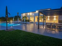 For sale is a luxurious villa, nestled in Poreč, just 1 kilometer from the sea and the first beaches. This magnificent property spans 683 square meters of living space divided into three residential units. Each apartment is crafted with meticulous attention to detail.