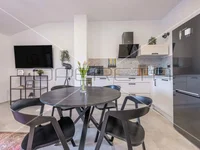 The apartment has electric underfloor heating in the bathroom, and all other rooms have air conditioners for heating and cooling.It is possible to connect to the chimney, so you can have additional heating sources or install a fireplace for ambiance.Top quality Italian “Marca Corona” ceramics are installed throughout the apartment.The carpentry is made of PVC with three-layer glass and all windows have aluminum shutters.