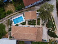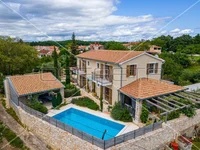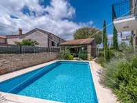 Istria, just 1.5 km from the Renaissance town of Svetvinčent, an Istrian gem with a rich tourist offer and numerous events, this charming holiday home is located.In a small rural settlement, close to the town center, it will provide peace and privacy, and comfort is promised by the proximity of all the necessary amenities.On the plot of 753 m2 there is a house, a swimming pool with a sunbathing area, an additional house with a terrace in the function of a zone for relaxation and socializing, a garden with planted Mediterranean plants and covered parking spaces.The house itself has an area of 160 m2 and extends through the ground floor and first floor.On the ground floor there is a hallway, a living room with a fireplace, a kitchen and a dining room with access to a covered terrace where there is also a summer kitchen, a pantry and a toilet. The staircase leads to the first floor where there are four bedrooms, each with its own bathroom, while one of the rooms is currently used as a gym. Two of the rooms have their own balcony.The house is heated by a floor heating system (heat pump) and cooling is solved by means of a fan convector.The house is decorated in a wonderful rustic style, with many stylish details and an authentic combination of stone and wood.Next to the 32 m2 swimming pool is a pool house with a bathroom and a terrace for enjoying warm summer days.The house is currently used as a family property for living, but due to its concept and location, it is a perfect investment for tourist rental.Distance from shops, restaurants and coffee bars – 1.5 kmDistance from the first larger town – 11 kmDistance from the beach – 18 km