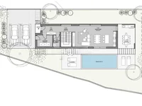 The villa will consist of a living room, kitchen, storage room, three bedrooms, three bathrooms, and a toilet. With its solid concrete-brick construction, this villa provides a sense of security and stability. The PVC windows come in anthracite color.