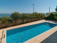 Salon otwiera się na przestronny taras z basenem i tarasem słonecznym, z pięknym widokiem na morze.