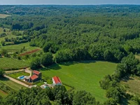 The properties for sale consist of two houses with swimming pools and a plot of building land, distributed across three cadastral parcels that together form a unique whole.