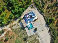 Wnętrze willi obejmuje nowocześnie wyposażoną kuchnię, jadalnię, salon i przytulną część wypoczynkową. Na zewnątrz domu znajduje się odkryty basen i jacuzzi dla dwóch osób, a także taras z częściowym widokiem na morze.