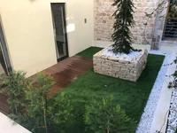< p>Mieszkanie jest dogodnie zlokalizowane na parterze, składa się z przestronnej części dziennej obejmującej trzy sypialnie. Dwa z nich wyposażone są w prywatne łazienki z toaletami, zapewniając mieszkańcom maksymalny komfort. Dodatkowa toaleta jest wygodna dla gości.Jasna i stylowa kuchnia harmonijnie łączy się z przytulnym salonem, tworząc idealne miejsce do relaksu i spotkań towarzyskich. Elegancka loggia i ogród zapewniają doskonałe możliwości relaksu i cieszenia się świeżym powietrzem.
