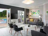 Powierzchnia mieszkalna Open- plan z wysokimi sufitami, szklanymi ścianami i bezpośrednim tarasem.
