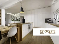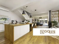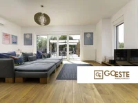 Z salonu można podziwiać pięknie zagospodarowany ogród, który składa się z basenu z tarasem słonecznym, kącika wypoczynkowego, grilla i garażu z dwoma miejscami parkingowymi. Atrakcyjne i wyrafinowane wnętrze jest uzupełnione dużymi przesuwanymi ścianami i pozwala na większą ilość światła dziennego i ciepła.
