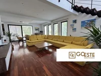 Na pierwszym piętrze znajduje się przestronny salon z jadalnią i wyjściem na taras z niesamowitym widokiem, łazienka i pomieszczenie gospodarcze. Szczególną cechą tej nieruchomości jest wysokość sufitów, które przyczyniają się do poczucia przestronności i luksusowej atmosfery.