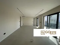 Na parterze znajduje się część dzienna składająca się z kuchni, jadalni i salonu, z którego jest dostęp do zadaszonego tarasu. Oprócz nich znajduje się również strefa wejściowa, toaleta i dwie sypialnie z własnymi łazienkami. Zewnętrzne schody prowadzą na pierwsze piętro, gdzie znajduje się hol wejściowy, toaleta, dwie kolejne sypialnie z własnymi łazienkami oraz część dzienna składająca się z kuchni z jadalnią i salonu z wyjściem na loggię. Szafy wnękowe, podwieszany sufit, nowoczesne oświetlenie i wylewane betonowe podłogi przyczyniają się do nowoczesnego wystroju.