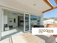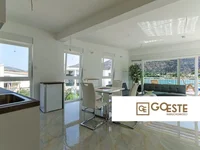 Apartament składa się z przestronnej kuchni, jadalni i salonu, który prowadzi na taras, gdzie mogą Państwo cieszyć się nim przez cały dzień, ponieważ taras oferuje zarówno cień, jak i część pod słońcem. Składa się również z dwóch pokoi, każdy z małym balkonem i widokiem na morze, a także łazienki i pomieszczenia gospodarczego. Apartament jest zorientowany na południe.