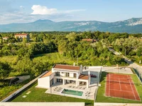 Odkryj luksusową willę z basenem, centrum odnowy biologicznej oraz prywatny kort tenisowy na południowo-wschodnim wybrzeżu Istrii, gdzie bujne zielone wzgórza spotykają się z musującym Adriatykiem.