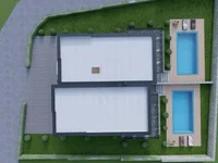 Villetta to nowoczesna konstrukcja z wysokiej jakości materiałami budowlanymi. Stolarka będzie z PVC antracyt, szkło będzie trójwarstwowe, a podłogi będą wykonane z ceramiki z ogrzewania podłogowego w całym domu i chłodzenia z klimatyzatorów. Planuje się zainstalować panele słoneczne na domu, a cena zostanie odpowiednio dostosowana.