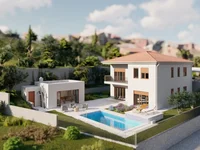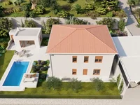 Luksusowa willa jest dostępna na sprzedaż w wysokim stanie shell- and-core, znajduje się w spokojnej i spokojnej okolicy, zaledwie kilka minut jazdy od Splitu, Chorwacja.