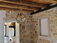 Ściany wewnętrzne pokryte wodoodpornym gipsem organicznym na bazie hydraulicznie naturalnego wapna, pokrycia podłogowe wykonane z wysokiej jakości płytek ceramicznych od włoskiego producenta Nordik Tile, wszystkie sypialnie z najwyższej klasy dębowym parkietem. Fasady domu, tarasy i suche ściany wykonane z ręcznie wykonanego kamienia stałego, typowego dla Istrii, kamienne doliny na wszystkich oknach i częściowo kamienne pokrycia podłogowe.