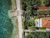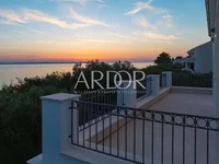 Located in the heart of the Zadar region, this elegant villa is positioned directly by the sea, in a peaceful and relaxing setting. The combination of classic architecture and carefully designed interiors reflects sophistication in every detail. The property is approximately 15 kilometers from the nearest airport, with restaurants, bars, shops, and other amenities easily accessible nearby. The villa sits on a plot of nearly 600 m², with a total of 210 m² of modern interior design spread over two floors. On the ground floor, there is a spacious living room with a fireplace, a dining room, an open-concept kitchen with high-end appliances, an additional guest toilet, as well as a laundry and utility room. The upper floor features a master bedroom with a private bathroom, a sauna, and a spacious terrace offering a stunning view. In addition to the master bedroom, there are two more comfortable bedrooms and an additional bathroom on the same floor. Security and privacy are ensured by an intercom system, security cameras, and an alarm system. This villa was built according to high German standards, combining classic elegance with modern elements. The overall composition captivates with simplicity and refined style, with every detail carefully selected with great care and dedication. From the foundation to the finishing touches, the superior quality of craftsmanship is evident. All built-in elements were custom-made by an experienced Bavarian carpenter, further confirming the uniqueness and high-quality workmanship. The villa is equipped with Oventrop underfloor heating and a Daikin Altherma system for heating and cooling. Security is ensured by an alarm system, security cameras, and WK2 anti-burglary windows. Each room is equipped with KAT5 installations and a SONOS wireless music system, while a water softening system is installed for added comfort. The facade is executed using the open-climate system, and solar panels on the roof provide additional energy efficiency. The outdoor area is equipped with an irrigation system. Special luxury details include natural stone measuring 1.20 m x 1.20 m, Bisazza mosaic, ship deck flooring, and Siemens appliances with an induction cooktop. The bathroom features a freestanding "Epona" bathtub by Domovari, Dornbracht “Mem” series faucets, and Antonio Lupi toilet bowls. An Invicta fireplace, sauna, safe, and wine cooler further enrich the offering of this exclusive property. The outdoor area includes a covered parking space, while the carefully maintained garden, lawn, and olive trees create a perfect oasis of peace and privacy. Dear buyers, in accordance with the Real Estate Brokerage Act, property viewings are only possible with the signing of a Brokerage Agreement. In the event of a purchase, the buyer is obligated to pay the agency commission. ID CODE: 2395