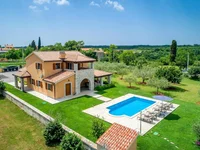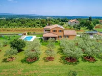 The property is equipped with essential infrastructure including electricity, water supply, and direct access via an asphalt road, along with air conditioning for year-round comfort. It holds a usage permit, and the energy certificate is currently in progress. Additional features include covered parking spaces, a landscaped garden, swimming pool, and barbecue area, all contributing to its positioning as a premium countryside villa in Istria.