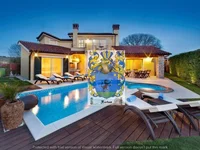 Beautiful villa for sale with a total area of 250 m2 and 750 m2 landscaped garden with pool. The ground floor has an entrance, living room, kitchen with dining area, one bedroom with private bathroom and the other bedroom has an additional private small open gallery, and another bathroom. The ground floor leads to the pool,and garden and sun deck.Upstairs are two more bedrooms, one small living room and one bathroom. The living room opens onto a terrace with sea views.The pool has a whirlpool and outdoor shower, in the basement there is a tavern with fireplace, wine cellar, billiards, the house is fully air-conditioned and equipped.