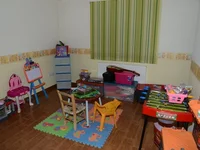 Jest poczekalnia z toaletą. Obok niego znajduje się ogromna przestrzeń, która jest wykorzystywana jako kuchnia i jest połączona z zadaszonym garażem (100 m2) z automatycznymi drzwiami, kotłownią i dużą przestrzenią magazynową. Wejście ma automatyczną bramę.