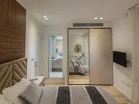 Na pierwszym piętrze są dwie sypialnie z łazienką, a na drugim piętrze jedna sypialnia z łazienką z dostępem do przestronnego werandy z widokiem na ogród i basen.