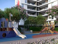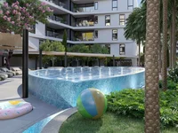 It is a 6-floors gate-closed club complex of 70 apartments with a family concept. A large children's and adult sports ground inside the complex. Landscaped garden with a stream. Sea view from the 3rd floor. Swimming pool, underground and covered parking.