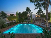 Willa otwiera się na jasną i przestronną przestrzeń mieszkalną i jadalnię, zaprojektowaną z myślą o nowoczesnym życiu rodzinnym. Duże drzwi przesuwne łączą wnętrza z tarasem zewnętrznym, wypełniając dom naturalnym światłem i zapewniając łatwy dostęp do ogrodu i wspólnego basenu.