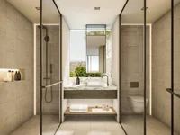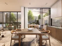 Accessed via a shaded private courtyard, this property sky-high glass walls fill the open spaces with sunlight, the sunken living room's 4.5m-high ceilings serving to enhance light and volume. Available in two- and three-bedroom layouts, indoor/outdoor living is prioritised; the kitchen seamlessly extending on to a large deck surrounding a private plunge pool, perfect for lounging, entertaining and dining al fresco.