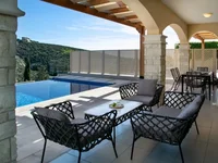 Large panoramic glass doors open out onto the terrace and swimming pool area from the living and dining area of the property and the garden has been landscaped with aromatic shrubs and trees.