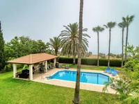 The home is equipped with modern amenities including solar water heating, photovoltaic panels, a water pressurizing system, and an advanced alarm system. Each room benefits from air conditioning, and the windows and doors are double-glazed with aluminum frames.
