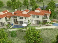 The villa features a master bedroom with an ensuite bathroom, an additional WC, and two more bathrooms. It also includes large tiled balconies and verandas, perfect for relaxing and entertaining. The living area is enhanced by an elegant stonework fireplace, adding warmth and charm. Other features include a private parking area, a private garden, and ample storage space. For those seeking extra luxury, there is an option to include a private swimming pool. Additionally, the villa comes with pergolas that provide shaded outdoor areas for leisure and enjoyment.