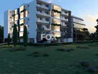 For sale off-plan 3-bedroom apartment in Pafos, on the 2nd floor of a 6-storey building with elevator. Internal space is 111.4 m2, featuring a bright open-plan kitchen and living area, two bathrooms, and large windows opening to a generous balcony. Set within a gated complex with a communal swimming pool, fully equipped gym, and landscaped grounds. Optional furnished.