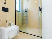 The property boasts three luxurious bathrooms, fully adorned with marble on walls and floors, and a private swimming pool measuring 3x7 meters. Comfort is guaranteed year-round with underfloor heating, built-in central air conditioning, and a VRV system. High-quality fixtures and fittings include sliding thermal slimline aluminum doors and windows, LED dimmable lighting with integrated ceiling strips, and premium furniture and appliances from brands such as BOSCH.