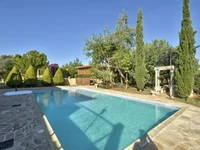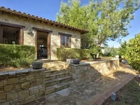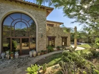 Main House: 440m2,Guest House: 100m2 2 studios 50m² x2, Plot: 3911m2 House consisting of: A. Ground floor: kitchen - family room, utility room, living room dining room, entrance hall, a master suite with separate dressing area and en-suite bathroom, guest’s toilet and study. B. 1st Floor with a landing hall, two bedrooms both en suite, large balconies all around the house. 5. Stone wall boundary with iron bars and 2.20m high electric gate remotely controlled entrance door - video/audio link to the building. 6. Preparation for irrigation system with a complete water system connected to own water well. 7. Preparation for satellite and ADSL / Broad band connections. 8. Solar and electric water heating system. 9. A pergola 3m x 6m with lighting. 10. 250m² of Crazy paving. 11. Preparation for 18 perimeter lights (lighting fixtures for in and outside the house will be supplied by the Purchaser). 12. Tiled roof bar with BBQ. 13. 4 Garden water/hose connections to own water source 14. Covered sitting area with fire place 15. 100m2 guesthouse with two en suite bedroom and kitchenette 16. Alarm System 17. Reclaimed roof tiles on top of specially imported corrugated cement based sheets 2. One single stone built garage 4 x 6 m with remote control door. 3. 20m2 outhouse with sauna, toilet, shower and changing room 4. Swimming pool 6m x 12m (maximum depth 1.6 meter) with built in spa. Double glazed aluminum windows, Designer kitchen , Parquet wood in bedrooms, Ceramic tiles or marble downstairs, Entertainment and Energy management System,. Central heating Air conditioning.