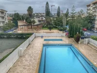 Situated on the 1st floor of a well-maintained complex with a swimming pool, the apartment is fully furnished and equipped with air conditioning in all rooms. Both bedrooms and the living room offer direct access to the balcony, creating a bright and comfortable living space.