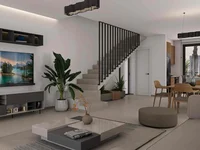 It is a modern 3-bedroom seaside villa designed for comfortable Mediterranean living.