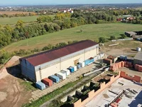 commercial land with a total area of 12,365 m2, located in the western part of the village of Chervene Pechki. A hall with an area of 1120 m2 was built on the site, which is currently used as a warehouse for industrial products. This is a hall made of steel structure, lined with corrugated sheet. The hall is connected to the distribution power grid. A drilled well was built on the site next to the hall, which currently supplies the complex and mobile plumbing equipment.