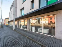 Business premises with large shop windows along the very busy Bělohorská Street, Prague 6.