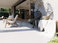 Willa zaprojektowana na jednym poziomie posiada nowoczesne wykończenia, otwarte przestrzenie mieszkalne oraz duże otwory przesuwne łączące pomieszczenia wewnętrzne i zewnętrzne.