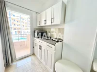 Balkon oferuje widok na basen i spokojną wewnętrzną część kompleksu.