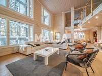 Stylowa, oświetlona czteropokojowa willa położona pomiędzy Levi South i West Point. Duże okna zwrócone na południe zapewniają jasną i przestronną atmosferę. Kuchnia, z kamiennymi blatami, oferuje dużą szafę i miejsce do przygotowywania posiłków dla większych grup. W głównej sypialni na środkowym piętrze znajduje się łazienka z jacuzzi. Trzy sypialnie znajdują się na najwyższym piętrze, z których dwa mają własne balkony z spokojnym widokiem na las. W piwnicy znajduje się przytulny kominek, sauna, przestronna garderoba oraz nowoczesna sala fitness wybudowana w 2022 roku.