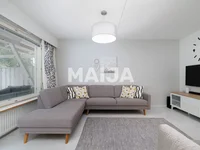 The stylish apartment has been almost completely renovated in a modern style. The living room windows face the backyard and forest views. The spacious, stylish kitchen was renovated in 2019, and the bathroom and sauna were renovated in 2021. Both bedrooms are generously sized. On the backyard side, there is a partially covered and extended terrace.