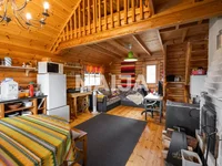 Completed in 2004, the cottage offers 52 m² of cozy and practical space: a living room, a bedroom, a sauna, a dressing room and a loft suitable for a stay or additional accommodation. Log surfaces, plank floors and the warmth of the fireplace create an authentic Lapland cottage atmosphere.