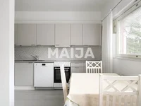 Mieszkanie ma bardzo funkcjonalny i przestronny układ, który sprawia, że życie codzienne gładkie. Salon łączy się z jadalnią i nowoczesną kuchnią z dużą ilością szafek i wysokiej jakości urządzeń. Jest miejsce na stół przy oknie. Szklany balkon przynosi dodatkowe przytulność przez cały rok. Lekkie wykończenia i trwałe winylowe deski podłogi tworzą nowy wygląd.