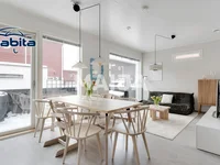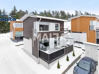 This modern and quality-built detached house was completed in 2018 and offers cozy living on two floors. The apartment has a spacious open kitchen that connects to the living room. The large private terrace invites you to enjoy the outdoors and relaxing moments with friends and family. From the terrace you can access an easy-care lawn area on the edge of the house. In front of the front door, you can put your car on charge. There is an outdoor storage area in the yard to provide additional storage space. Upstairs there are two bedrooms and a toilet, connected to which there is also a laundry room. On the first floor there is an elegant sauna connected to the bathroom, which makes everyday life even more pleasant.