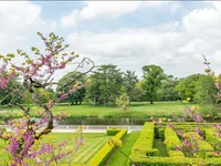 Park krajobrazowy z setniowymi drzewami, dwoma stawami, sklasyfikowanymi elementami (lawoir, labirynt) i dawnym wyścigiem podkreśla historyczny charakter własności.