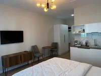 Description: Studio, 1 bedroom, 1 bathroom, 1 balcony (3 m ²), turnkey: furniture, bed, table, chairs, TV. Underground (4-level, 200 parking lots) and ground parking.