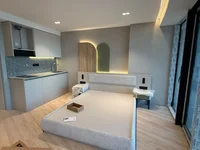 Studia Turnkey z meblami i urządzeniami z bezpośrednim widokiem na morze 30 m od nabrzeża, przydział w gotowym domu, na zamówienie w styczniu, recepcji i basen na dachu, zarządzanie od międzynarodowego operatora.