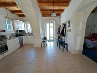Po wejściu do głównej rezydencji znajdziesz się w bardzo przytulnej okolicy. Na parterze znajduje się wygodna część wypoczynkowa otwarta z kuchnią. Salon ma wystarczająco dużo miejsca na dużą kanapę naprzeciwko telewizora. W tym pokoju znajduje się także piec opalany drewnem, tuż obok fantastycznego kamiennego łuku łączącego łóżeczko z kuchnią. Kuchnia jest w pełni wyposażona w zmywarkę, lodówkę i piekarnik. Posiada wiele szafek przydatnych do przechowywania narzędzi do gotowania, ale istnieje również oddzielny mały pokój, który jest używany jako spiżarnia. Jadalnia ze stołem dla 4 osób i pierwsza z dwóch łazienek owiń to piętro. W całym domu, szczegóły kamienia i drewna na suficie są czymś, co warto wspomnieć, harmonizacja siebie nawzajem doskonale.