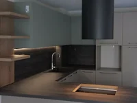 Kuchnia salon z nowoczesnym włoskim mebli kuchennych. Istnieje możliwość zainstalowania większej lodówki poprzez modyfikację kuchni