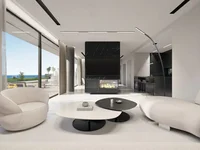 - Parter obejmuje bezproblemową integrację kuchni, jadalni i pomieszczeń mieszkalnych, uzupełnione przez pokój gościnny z widokiem na basen i morze.