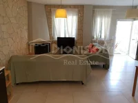 The maisonette is located on the ground and 1st floors and there is a garden 24 sq. meters in front of the apartment and 15 sq, meters in the back. The maisonette consists of a living room with a fireplace and a kitchen, 2 bedrooms, a bathroom and wc. There is an open view from the balconies.
