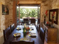 Beautiful views, ample private space within walking distance of shops and bars. The construction combines stone both inside and outside, harmoniously blending stone and solid wood in the ceilings, following the architectural standards of Northern Kefalonia. The ground floor consists of a kitchen, dining-living room, and a bathroom with a shower.